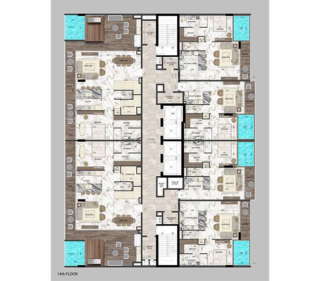 Duplexes with Waterfalls: Experience the epitome of luxury with unique duplex layouts adorned with calming indoor waterfalls.